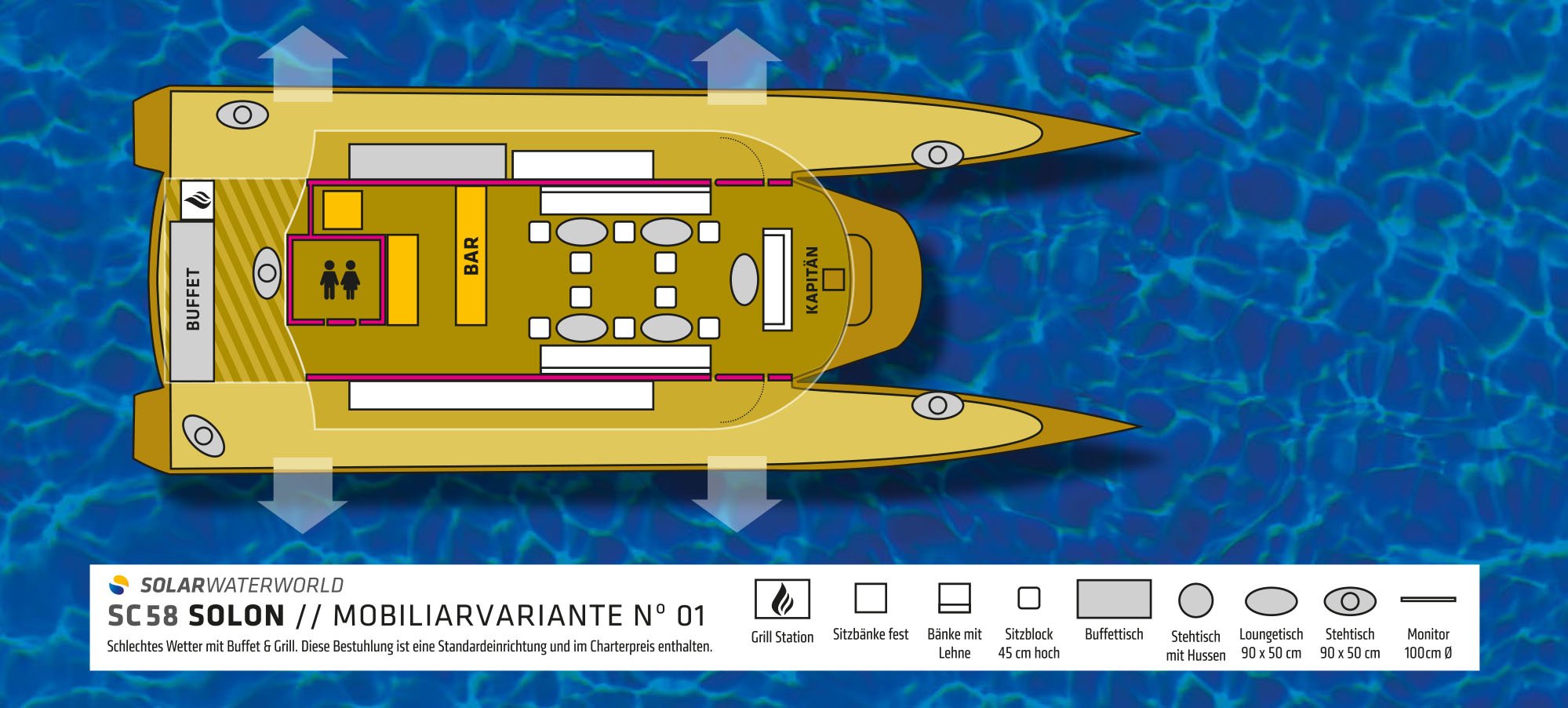 Sie möchten einen ersten Eindruck von der SunCat 58 „Solon“ dann klicken Sie auf den weißen Pfeil und schauen sich um.